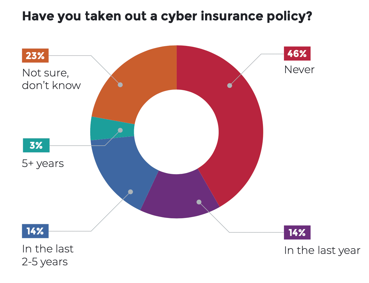 One mitigation we paid considerable attention to was cyber insurance, as it represented a slightly different take towards shielding businesses from a ransomware incident. We found that 69% either hadn’t taken out a cyber insurance policy or didn’t know if they had. This could indicate a blind spot in how IT professionals are thinking about their security. The costs of ransomware have risen rapidly, as data from our partner Coveware has shown, and cyber insurance is one way to cover damages that would otherwise ruin a business.
