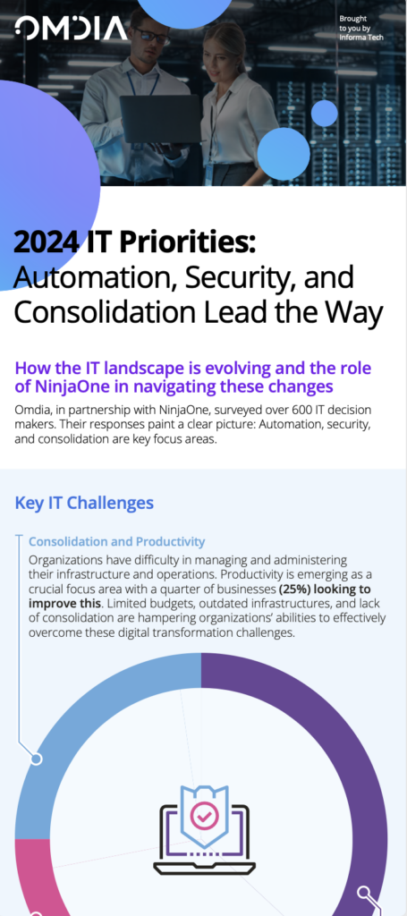 The landscape of IT constantly presents businesses with new challenges and opportunities. The “Leading IT Trends for 2024” report, a collaborative effort between Omdia and NinjaOne, offers a comprehensive exploration of how businesses are harnessing cutting-edge IT strategies to maintain a competitive edge. This blog delves into the report’s “Voice of the Customer” section revealing key trends and innovative solutions that are molding the future of IT, as evidenced by real-world customer success stories.