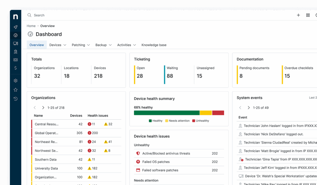 Vereinheitlichen Sie Sichtbarkeit und Kontrolle und automatisieren Sie die mühsamsten IT-Aufgaben mit NinjaOnes benutzerfreundlicher All-in-One-Endpunktlösung. Überwachen, unterstützen und kontrollieren Sie Ihre Endpunkte unabhängig vom Betriebssystem – von Smartphones bis zu Servern. Minimieren Sie Ausfallzeiten und steigern Sie die Produktivität Ihrer Mitarbeiter.