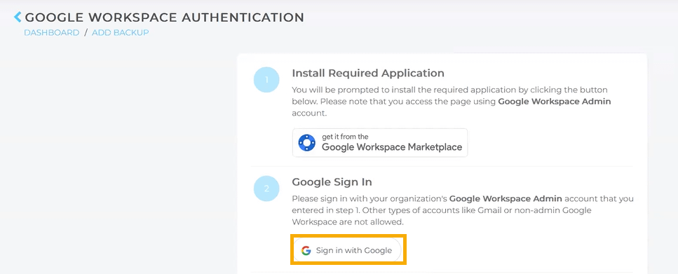 Befolgen Sie diese Schritte, um Ihr Google Workspace-Konto für die erste Sicherung vorzubereiten.