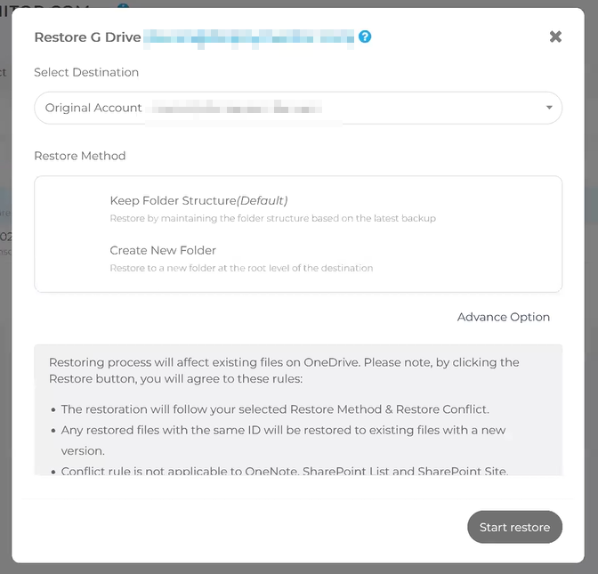 - Wählen Sie die Option Wiederherstellungsordner und klicken Sie auf Wiederherstellung starten.