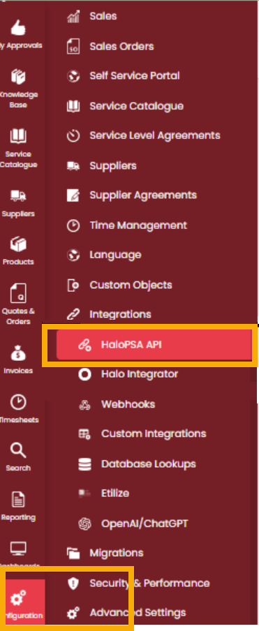 - Navigieren Sie zu Konfiguration → Integrationen → HaloPSA API.