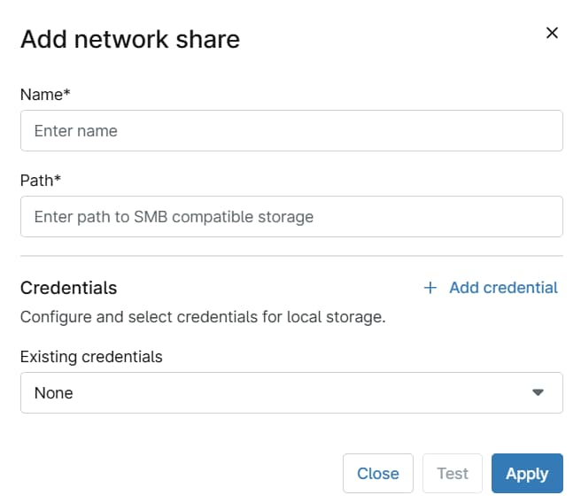- Berechtigungsnachweise: Sie können vorhandene Benutzernamen und Passwörter hinzufügen, indem Sie sie im Dropdown-Menü auswählen, oder Sie können auf " Add Credential" klicken, um ein neues zu erstellen.