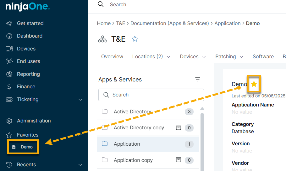 Dieser Artikel beschreibt die Verwendung des Apps & Services Werkzeugs in NinjaOne's Dokumentationsfunktion.