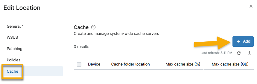 Um die Zwischenspeicherung in NinjaOne zu aktivieren, müssen Sie zunächst ein oder mehrere Geräte konfigurieren, die als lokales Repository für alle heruntergeladenen Dateien dienen, die der Agent verwendet.