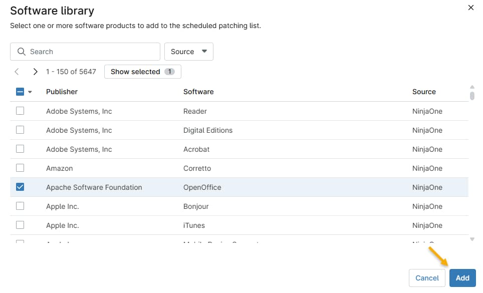 - Aktivieren Sie das Kontrollkästchen für jede neue Software, und klicken Sie dann auf Hinzufügen.
