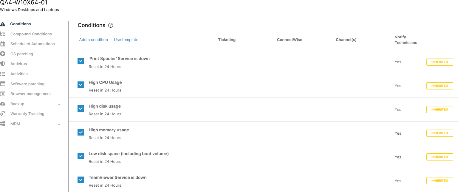 - NinjaOne-Richtlinien: Bedingungskonfiguration