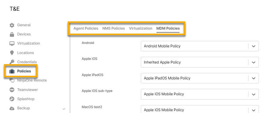 Standardrichtlinien bestimmen, welche Richtlinie einem Gerät zugewiesen wird, wenn Sie es zu NinjaOne hinzufügen. Sie können ein Gerät jedoch auch später noch einer anderen Richtlinie zuordnen.