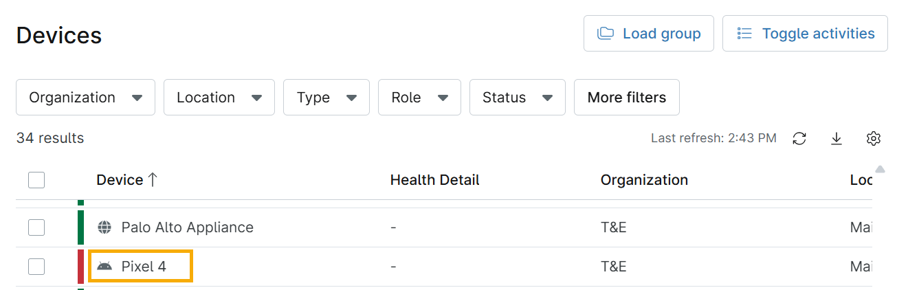 - Klicken Sie in der Geräteliste auf den Namen des Android-Geräts.