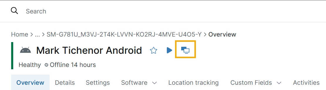 - Klicken Sie auf das NinjaOne Remote-Symbol neben dem Gerätenamen.