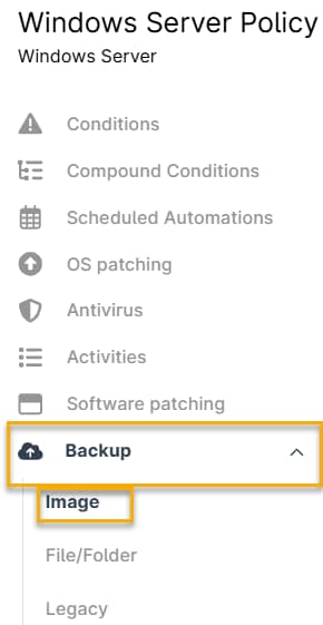 Figure 1: Windows Server Policy (click to enlarge) - In the policy's navigation menu, expand Backup. Then, select Image from the flyout menu. You'll see the Boot Verification section.