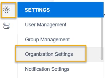 You can access the Organization Settings page from the SETTINGS tab in the left navigation menu of the NinjaOne SaaS Backup Partner Portal.