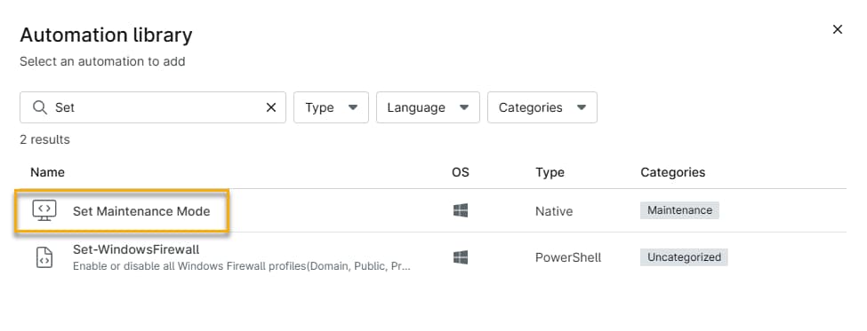 - The Set Maintenance Mode automation is compatible with Windows, macOS, and Linux operating systems.