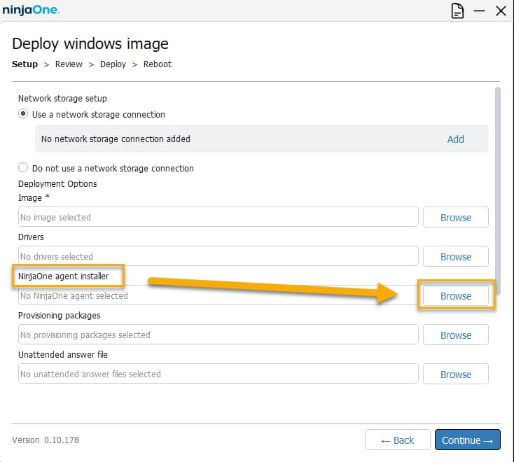 - Complete the remaining image deployment steps. For a complete explanation of the entire deployment process, refer to NinjaOne: Deploying Windows Images With the OS Deployment Tool.
