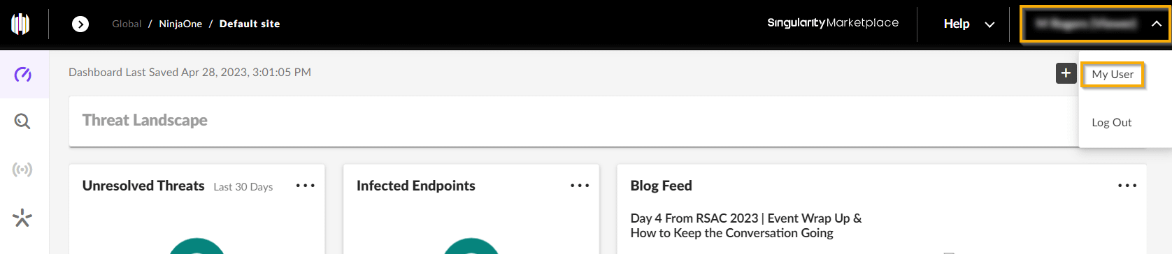 - In the top navigation menu, click the account name drop-down menu and select My User.