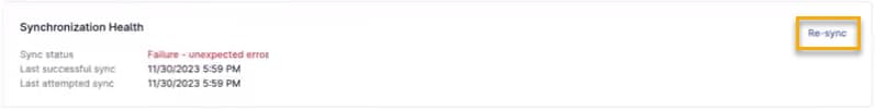 The integration syncs up to six times every five minutes. In the event of a failure, the Re-sync button shown in Figure 7 will appear in the Synchronization Health section of NinjaOne's SentinelOne integration app.