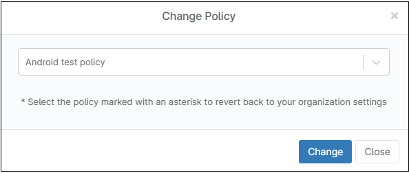 Figure 86. Change device policy dialog box - Select the desired policy from the drop-down menu.