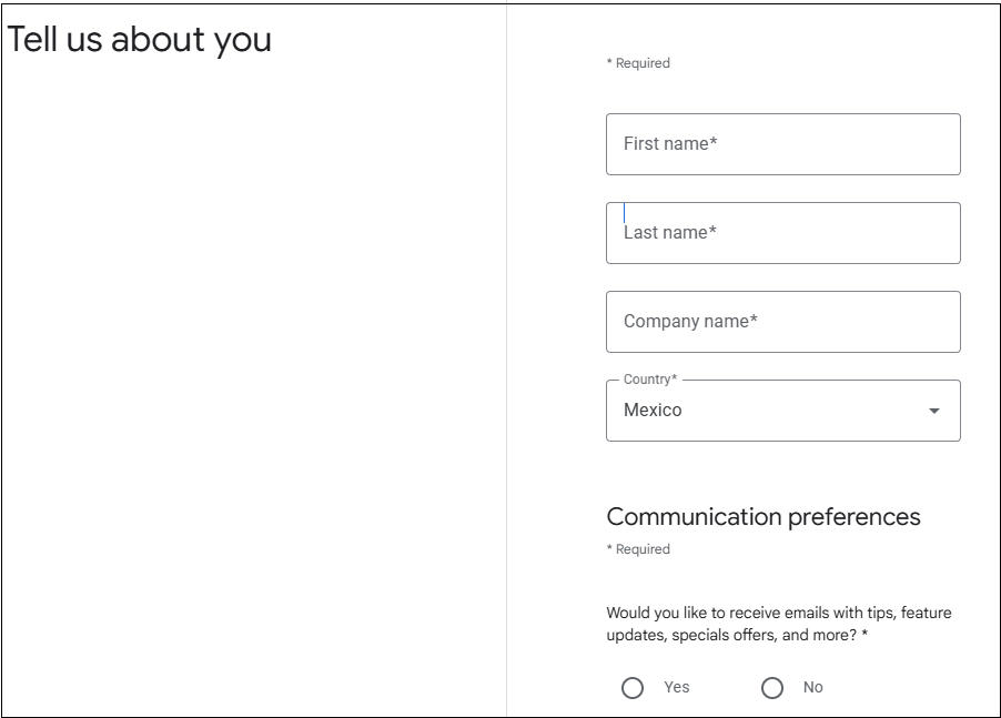 - After confirming the email account, you will be taken to another page to continue filling out the information required by Android Enterprise.