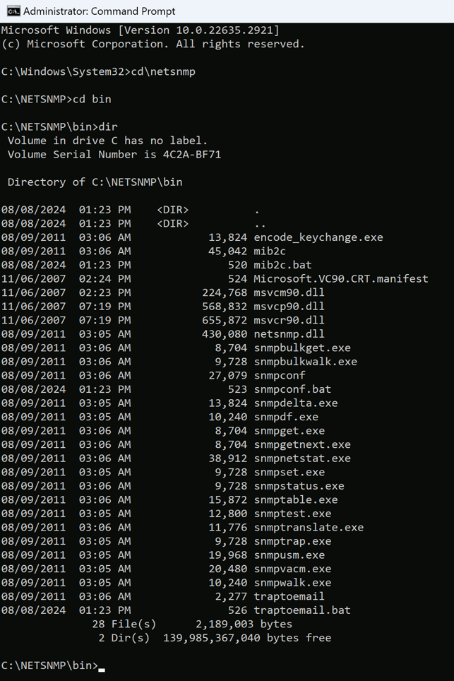 Figure 4: Net-SNMP /bin folder (click to enlarge)