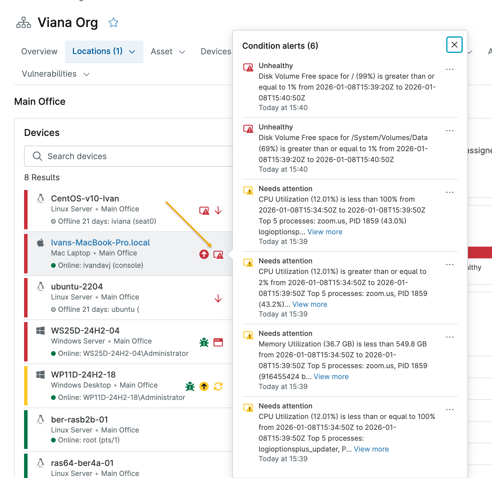 - Devices with conditions triggered (both agent and cloud monitor-based)