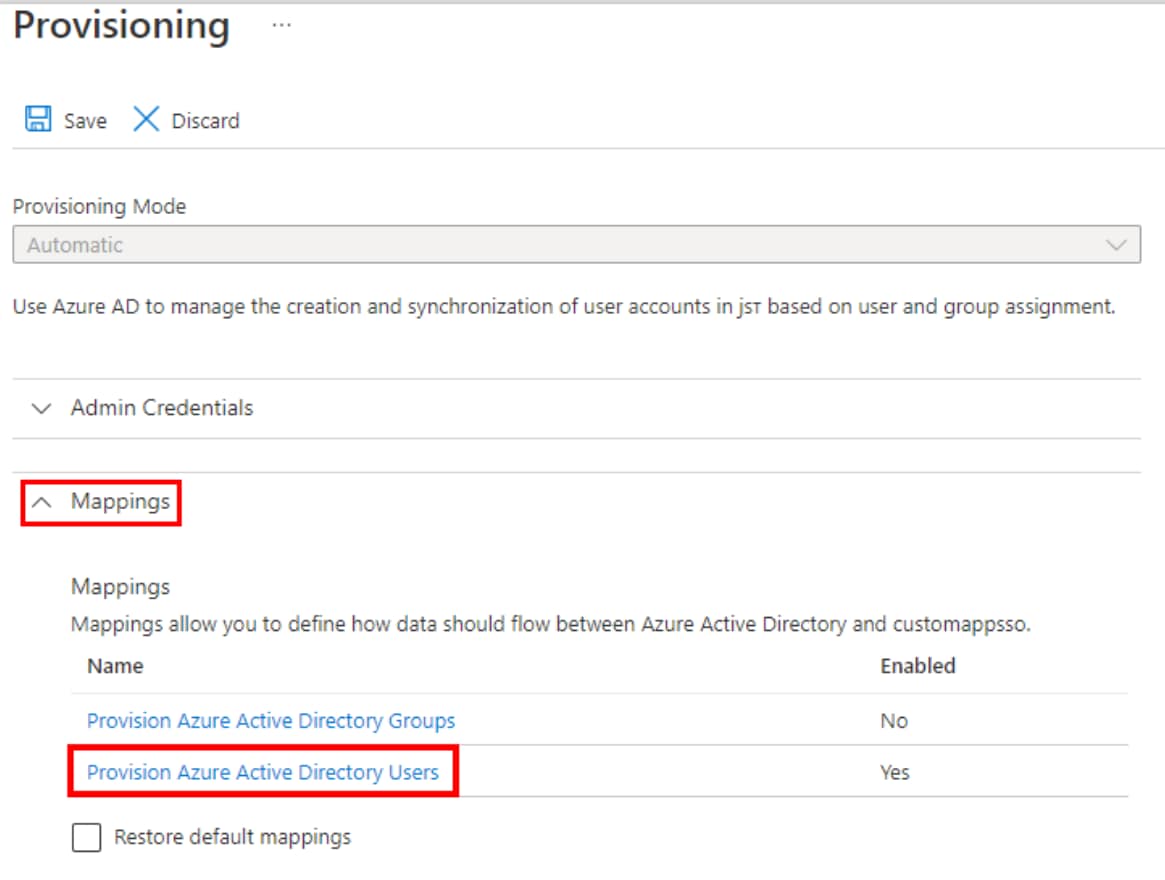 - In your Microsoft Azure Enterprise application, expand the Mappings section and click Provision Azure Active Directory Users.