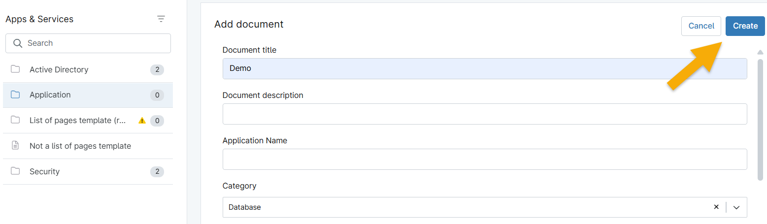 Figure 5: Add new Apps & Services documentation → Create (click to enlarge)