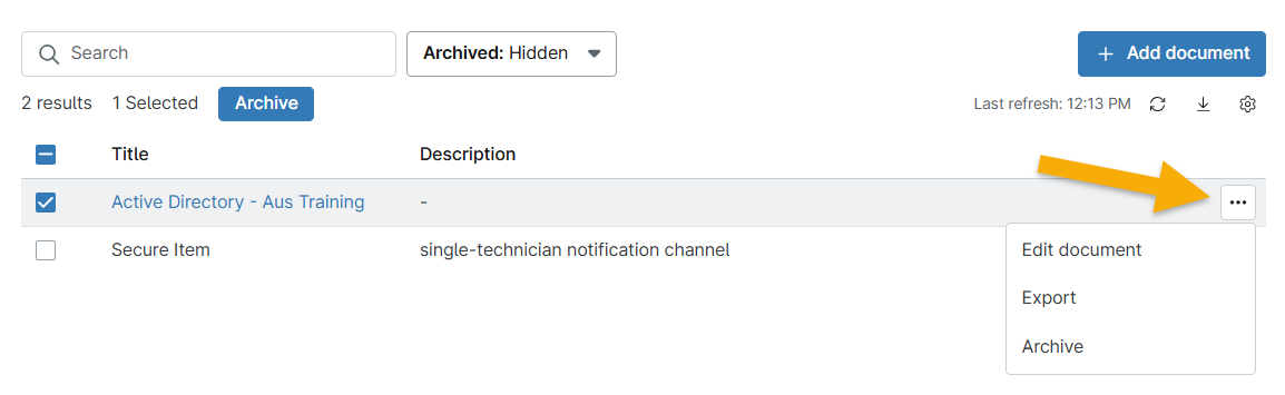 - Archived documentation will show a bin icon next to the template name.