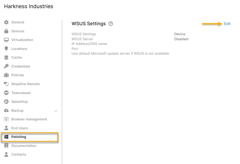- Configure your protocol and port, then select whether you would like to use Microsoft's default update server if WSUS is not reachable for patching. When finished, click Save. Your newly configured WSUS settings will show in the UI.