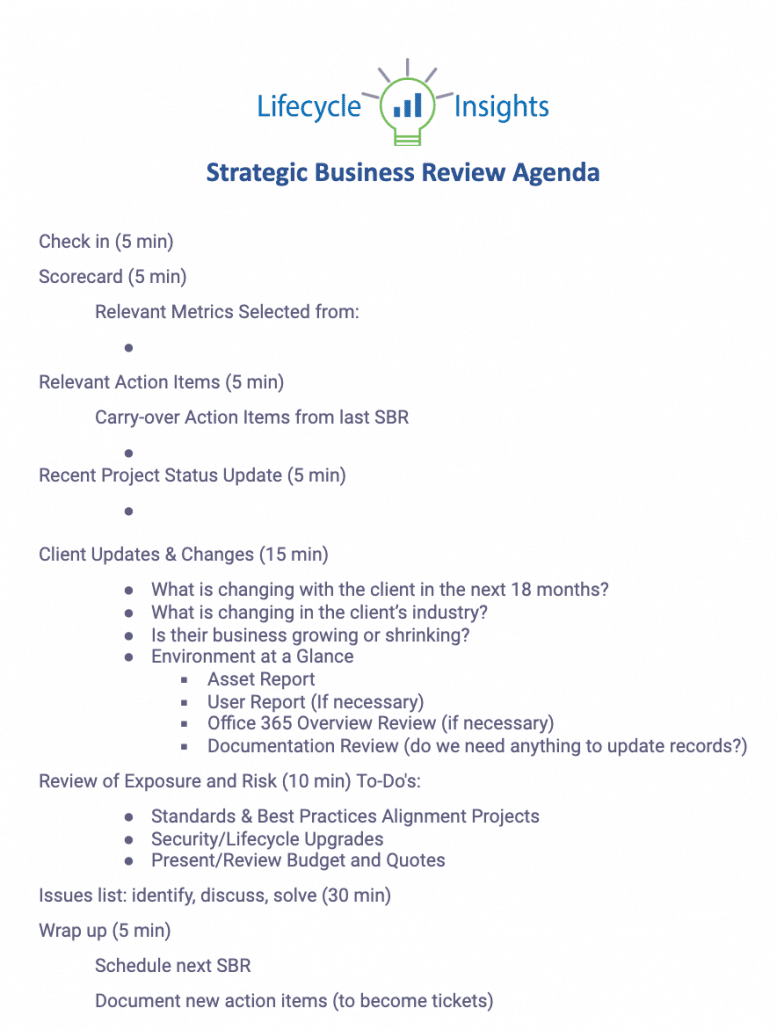 Antes que nada, cabe recordar que los procesos nacen de la experiencia y que no habrá nada que aporte tanto valor a tu empresa como estos. La forma que tiene un MSP de afrontar el proceso de revisión trimestral del negocio es un ejemplo perfecto. Los MSP que tienen más éxito entienden que las revisiones trimestrales no sirven únicamente para (re)definir su posición en el mercado, sino que también son una oportunidad para generar nuevos ingresos.