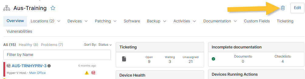- En NinjaOne, vaya al panel de control del dispositivo que desea eliminar de la plataforma.