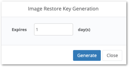 También necesitarás una Clave de autorización de imagen para el dispositivo cuyos datos quieres restaurar. Puedes generar una Clave de autorización de imagen siguiendo los mismos pasos descritos anteriormente en el método 2. NinjaOne te pedirá que establezcas un período de caducidad al generar la Clave de autorización de imagen. El período de caducidad por defecto es de 14 días.