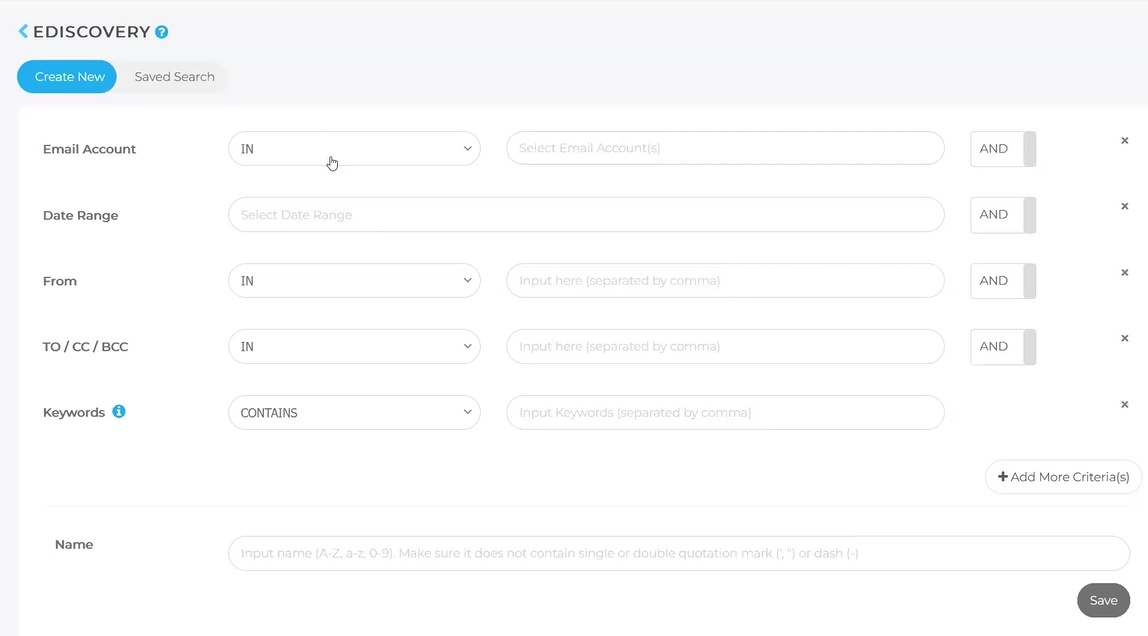 Este artículo explica cómo crear búsquedas de datos con la función EDiscovery de Archiver.