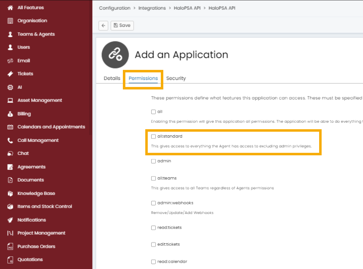 - Vaya a Configuración → Integraciones → API HaloPSA.