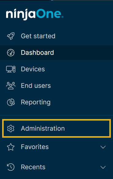 1. En NinjaOne, haga clic en Administración en el menú de navegación.