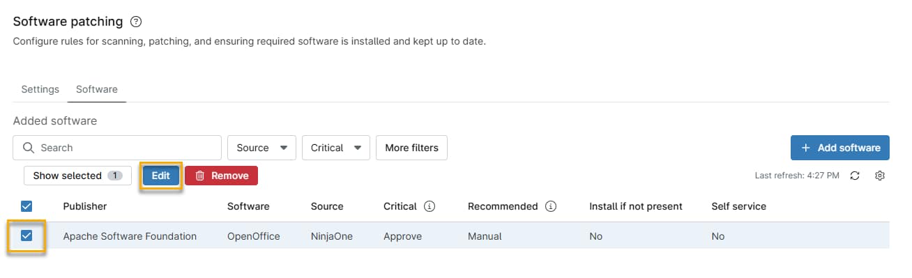 - Seleccione el software (o elija Seleccionar todo) y, a continuación, haga clic en Editar.