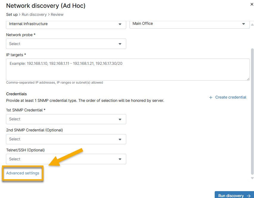 Ejecutar el descubrimiento de red NMS ad hoc