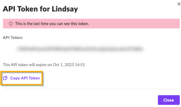 - SentinelOne generará un nuevo token de API y lo mostrará en una ventana una sola vez.