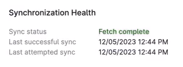 Si ves un estado que no sea Recuperación completada, haz clic en el botón para restablecer el sondeador de la API e intentar otra sincronización.