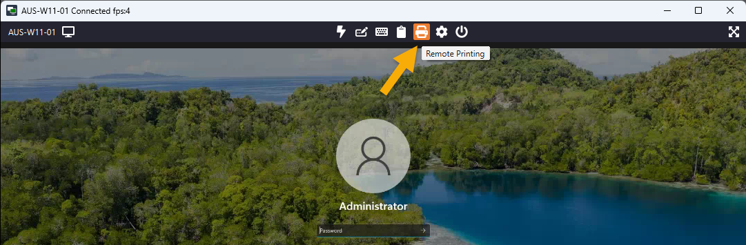 - Haz clic en el icono de impresora de la barra de menús superior durante una sesión activa para crear una impresora virtual.