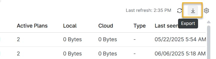 | Planes activos | El número de planes de NinjaOne Backup que se están ejecutando actualmente para ese dispositivo. |