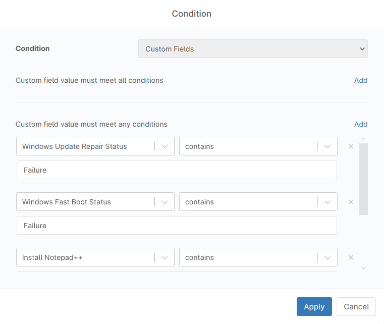 - Accédez à la section des conditions de votre stratégie d’appareil