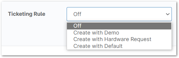 Si vous avez configuré une intégration PSA ou NinjaOne Ticketing, vous pouvez choisir de créer un ticket lorsque la condition se déclenche. La règle de billetterie NinjaOne repose sur les formulaires que vous avez ajoutés dans Administration → Applications → Billetterie → Formulaires.