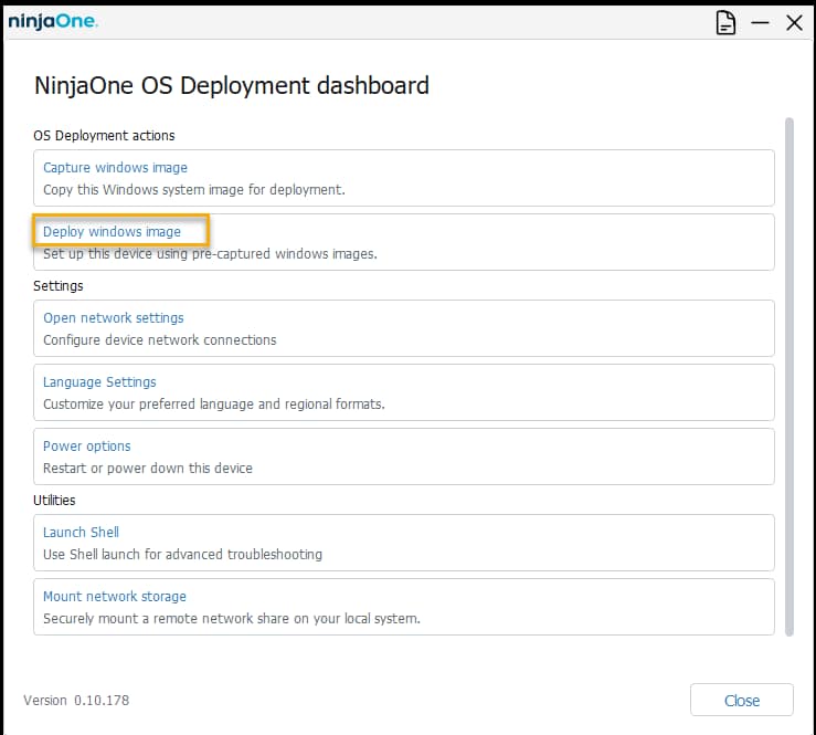 - Une fois que l'outil OS Deployment a démarré, sélectionnez Deploy Windows image.