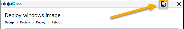 Le processus de déploiement du système d'exploitation NinjaOne génère un fichier journal auquel vous pouvez accéder en cliquant sur l'icône de la page dans le coin supérieur droit de l'écran. Vous pouvez télécharger les fichiers journaux et les joindre à un ticket d'assistance si nécessaire.