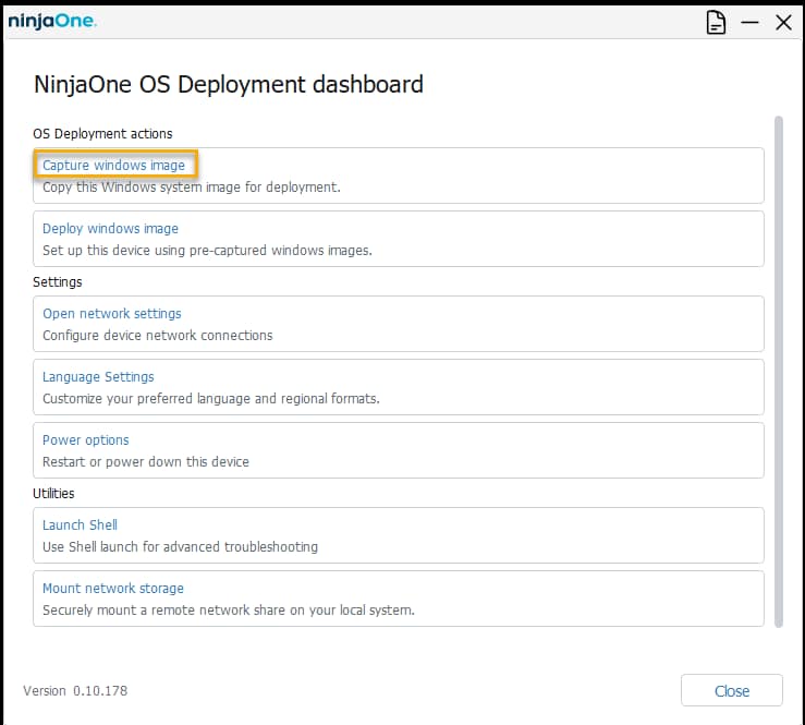 - Pour des conseils supplémentaires sur l'utilisation de cette fonction, voir NinjaOne : Conseils et astuces pour le déploiement du système d'exploitation.