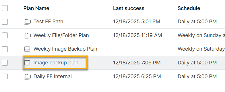 - Nome del piano: il piano di backup che ha creato il backup