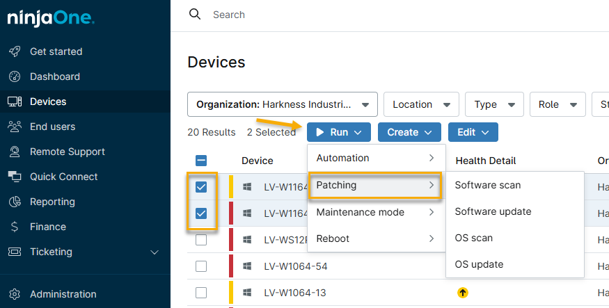 NinjaOne Patch Management consente di creare politiche di patching che scansione e applicazione di nuove patch software per gli endpoint Microsoft Windows.