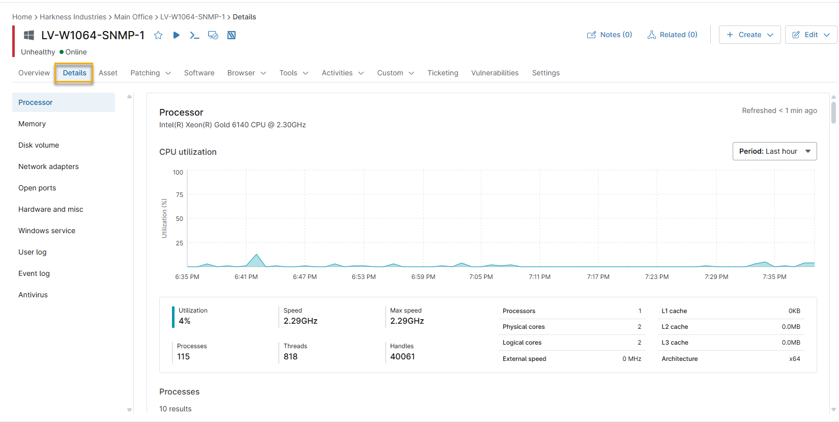 Molteplici sezioni di dettaglio del dispositivo, tra cui CPU, Memoria, Utilizzo del disco, Velocità di trasferimento del disco, Tempo attivo del disco e Punti dati di utilizzo della rete, consentono ora di visualizzare i dati in un intervallo di tempo che va dall'ultima ora agli ultimi 90 giorni, per un monitoraggio e una risoluzione dei problemi più completi.