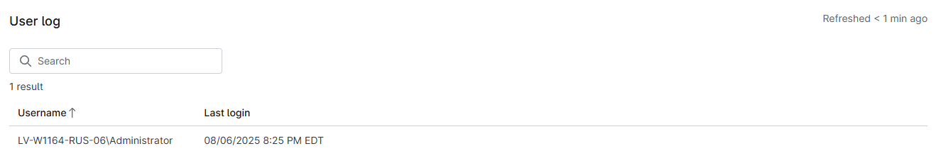 Questa sezione include il nome utente e la data e l'ora di accesso per l'ultimo caso di accesso di un utente a un dispositivo.