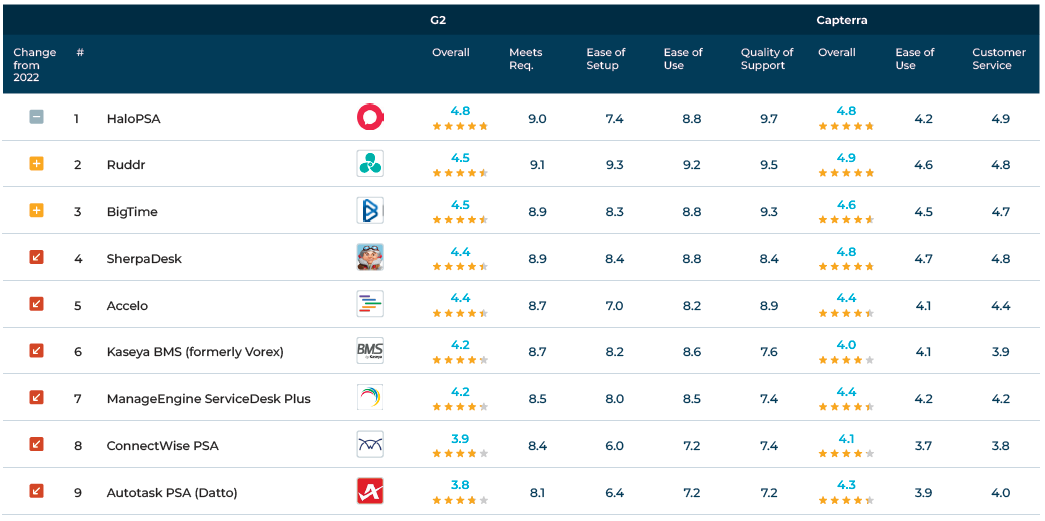 Bijgewerkt met nieuwe beoordelingen van beste MSP-software vanaf april 2023. Van RMM’s tot documentatiesoftware, op welke oplossingen vertrouwen Managed Service Providers (MSP’s) het meest om hun bedrijf van energie te voorzien en uitzonderlijke diensten te leveren? We hebben beoordelingen van G2 en Capterra verzameld voor meer dan 90 producten in 14 verschillende softwarecategorieën om je een centrale locatie te bieden waar je de beste MSP-software kunt vinden. Het resultaat is deze gids vol vergelijkingen, waarin duidelijk wordt aangegeven hoe afzonderlijke producten presteren op het gebied van algemene tevredenheid, bruikbaarheid en kwaliteit van ondersteuning. Hopelijk bieden deze grafieken MSP’s een handig startpunt bij het evalueren van de vele (en steeds verder toenemende) opties.
